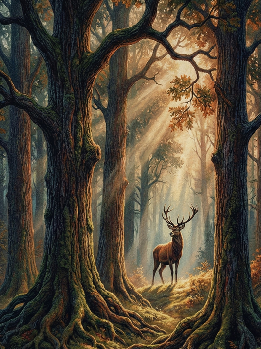 Stag in the Morning Light – Woven Forest Cotton Blanket Wildlife and Nature Gifts