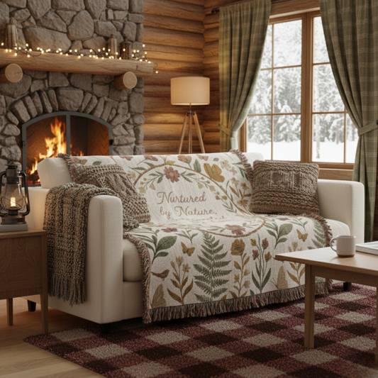Botanical Wreath Woven Cotton Blanket – “Nurtured by Nature” Floral Throw Gift