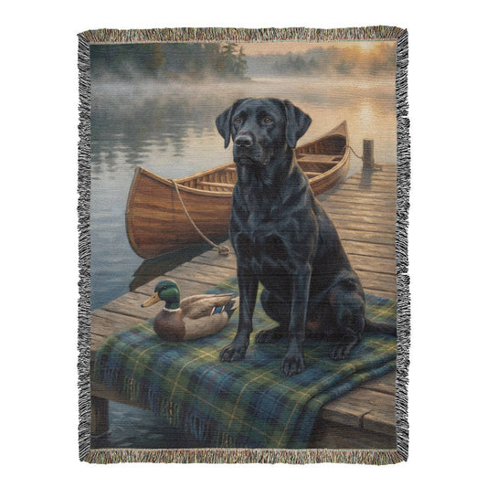 Black Lab by the Dock – Labrador Retrievers Woven Cotton Heritage Blanket Pet Lovers Gift