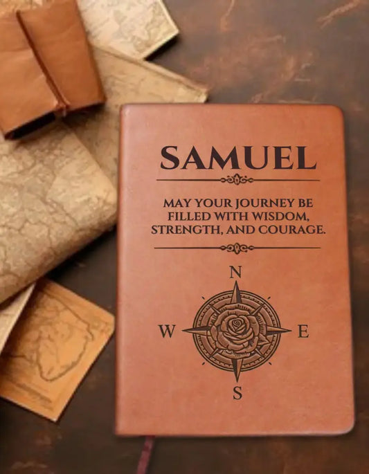 Personalized Vegan Leather Journal - Custom Name Adventure Travel Notebook Personalized Gift