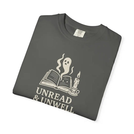 Unwell Ghost Graphic Tee with Book and Candle Design Comfort Colors Tee