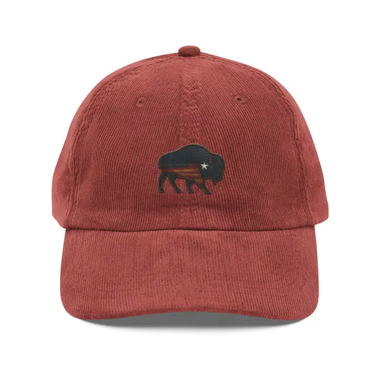Bison Embroidered Hat – Corduroy Baseball Cap Vintage Americana