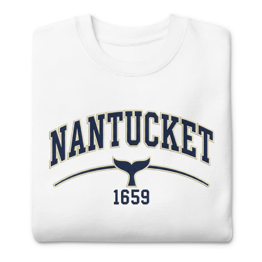 Nantucket Graphic Unisex Premium Sweatshirt – Coastal Island Crewneck, Preppy New England