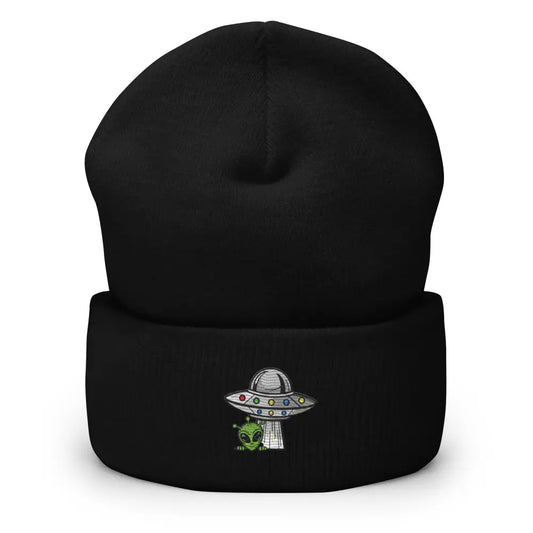 Alien UFO Embroidered Beanie – Funny Outer Space Knit Hat, Retro Alien Gamer Winter Cap, Cosmic Streetwear Gift
