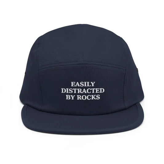 Easily Distracted by Rocks Embroidered," "Geology Lover," "Five-Panel Hat