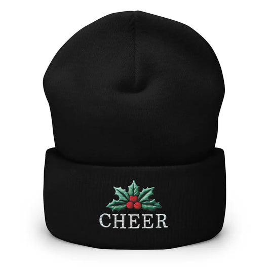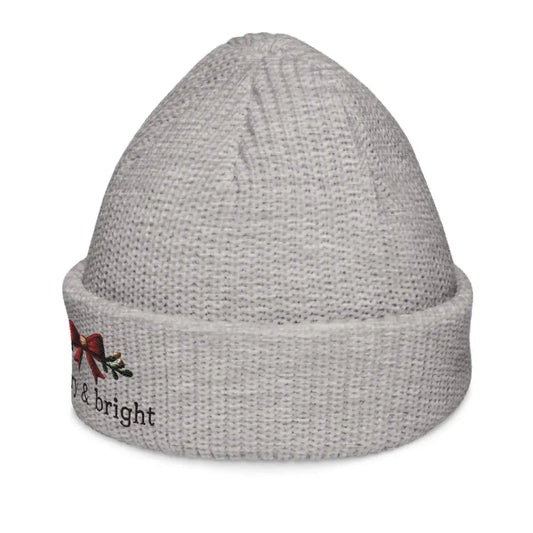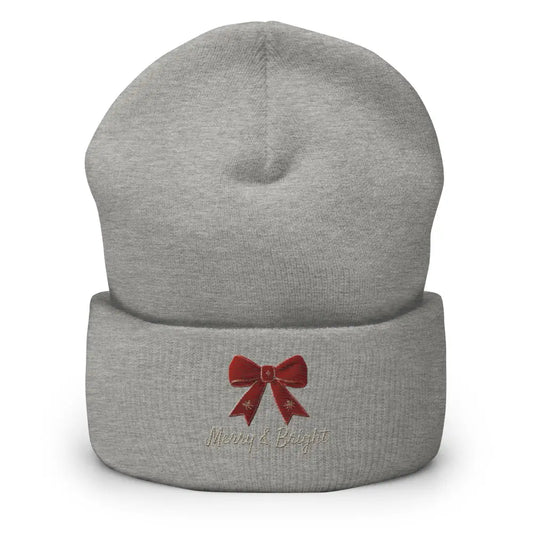 Merry and Bright Christmas Bow Cuffed Embroidered Beanie
