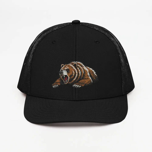 Grizzly Bear Embroidered Richardson 112 Trucker Hat – Wildlife Outdoor Snapback Cap, Rugged Hunting & Fishing Baseball Hat
