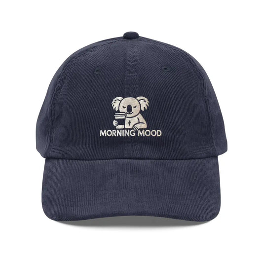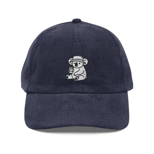 Koala & Coffee Morning Mood Embroidered Corduroy Cap | Trini Skies Vintage-Inspired Hat